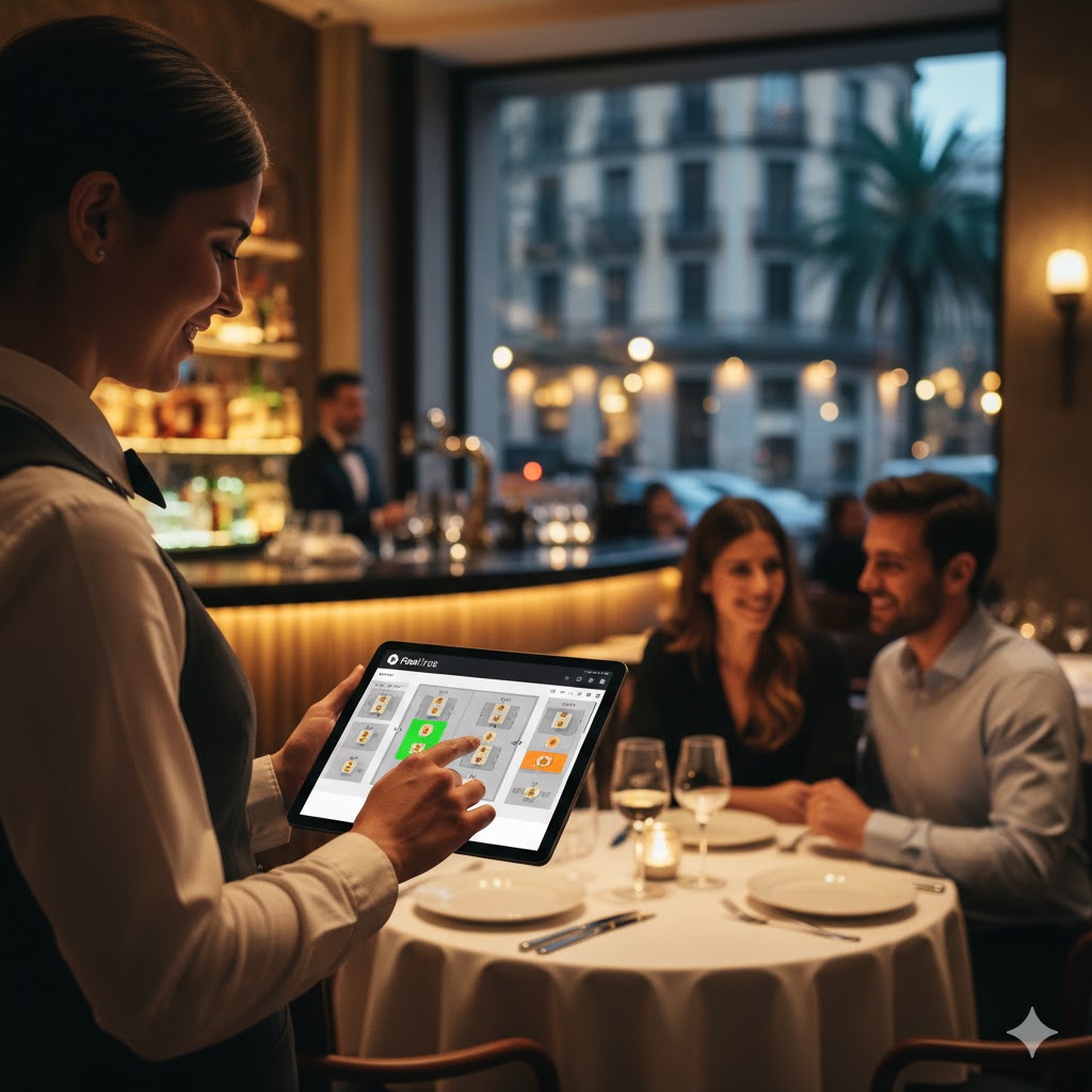Control visual de planos de sala, cambio de mesa y división de cuentas fácil y rápido.